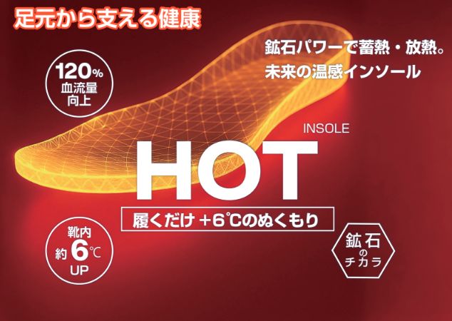 ✔︎鉱石のチカラで靴内約6℃アップで120%血流量向上
